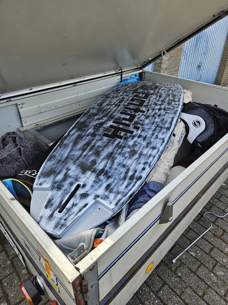 Aanhangwagen/ bagagewagen met deksel en imperiaalDit was ooit een vouwwagen, maar het tentdoek etc. zijn er allemaal uitgehaald om er een fijne bagagewagen van te maken. Bovenop kan zelfs door het imperiaal nog een dakkoffer. Oftewel genoeg ruimte. Ligt prima achter de auto, je merkt er nagenoeg niets van. Verlichting is vorig jaar nog vervangen. Op de dissel hoort ook een disselbak (foto 4). Daar zit nu een fietsenrek, maar die haal ik eraf en zet de disselbak terug. In de wagen liggen nu surfspullen van mij die gaan er uiteraard nog uit. De bodem is in goede staat geen rot of wat dan ook. Heeft altijd binnen gestaan. Verlichting van aanhanger heb ik van de zomer vervangen. Bandenprofiel is goed er is ook een reservewiel aanwezig dat zit onder de aanhanger.