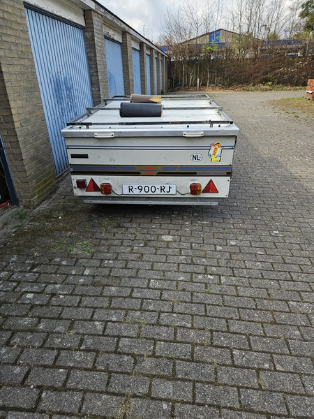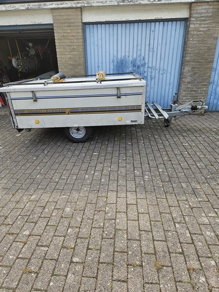 BagagewagenAanhangwagen/ bagagewagen met deksel en imperiaal Dit was ooit een vouwwagen, maar het tentdoek etc. zijn er allemaal uitgehaald om er een fijne bagagewagen van te maken. Bovenop kan zelfs door het imperiaal nog een dakkoffer. Oftewel genoeg ruimte. Ligt prima achter de auto, je merkt er nagenoeg niets van. Verlichting is vorig jaar nog vervangen. Op de dissel hoort ook een disselbak (foto 4). Daar zit nu een fietsenrek, maar die haal ik eraf en zet de disselbak terug. In de wagen liggen nu surfspullen van mij die gaan er uiteraard nog uit. De bodem is in goede staat geen rot of wat dan ook. Heeft altijd binnen gestaan. Verlichting van aanhanger heb ik van de zomer vervangen. Bandenprofiel is goed er is ook een reservewiel aanwezig dat zit onder de aanhanger.