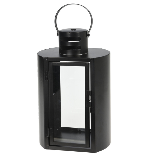 Middelgrote lantaarn van zwart metaal en hoge kwaliteit.