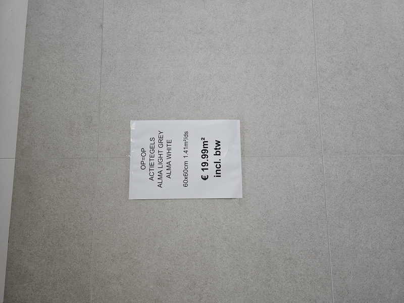Zo kan het maar net zijn dat er bijvoorbeeld tegels van € 49,99 M² ineens € 29,00 M² kost als de stockvoorraad het toelaat.