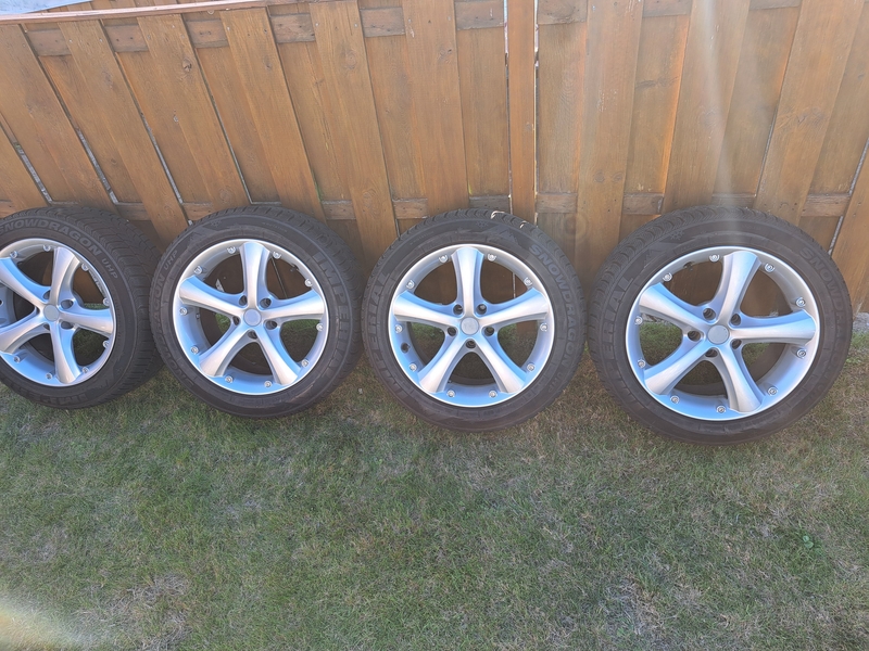 Set van vier 17"velgen + bandenIk heb hier nog liggen een set van vier 17" 5-spaaks velgen met 255 / 50 R17 Imperial Snowdragon banden er op. Banden hebben nog prima profiel, gemiddeld 7 mm. Velgen zijn z.g.a.n. misschien hier en daar een heel klein plekje, maar verder gaaf. Eventueel met nog een extra reservewiel ook 17" er bij. Alles is steekmaat 5 x 114,3. Past op de meeste Mazda's en ook veel andere merken/modellen.