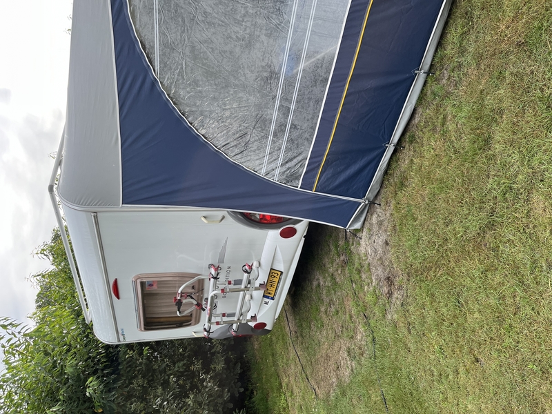 Goed onderhouden nette caravan bouwjaar 2006 met Dorema voortent en glasfiber frame, volautomatische mover Reich en fietsdragers voor en achter.(geschikt voor 2 elektrische fietsen)