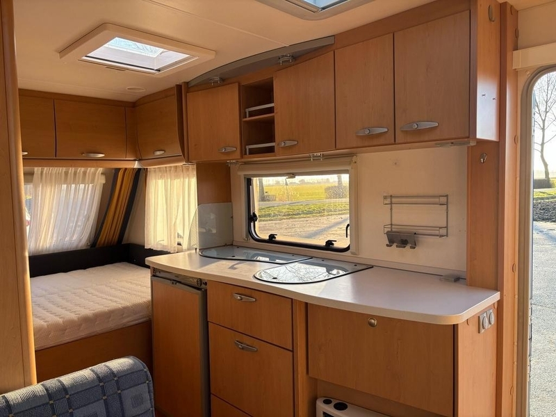 KeukenBoiler (Inhoud: 5 lt) Gaskomfoor (Aantal pitten: 3) Koelkast (Inhoud: 105 lt + Vriesvak SanitairCassettetoilet Boiler ( 5 lt ) Schoonwatertank Toilet/Wasruimte VerwarmingKachel Ringverwarming Exterieur/ Interieur Buitenlamp Combicassettes Dakluik Heki Slaapcomfort Binnenveringsmatras Lattenbodem Techniek en veiligheid Disselafdekking Omvormer Schokbrekers Serviceluik leeslampjes Stabil isator zware uitdraaisteunen accu lader reserve wiel+beugel Nieuwe dakluiken en kranen geplaatst. Alles functioneert en in prima staat. Altijd in overdekte stalling, nooit in gerookt.Geen huisdieren.