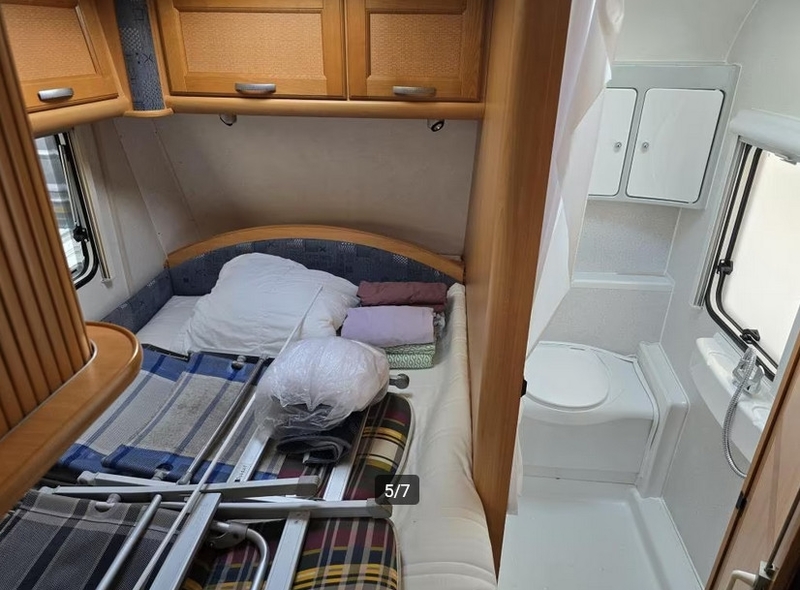 De caravan is uitgerust met een Frans bed, een in de lengte geplaatst tweepersoons bed. Dankzij de traagschuimmatrassen en lattenbodems op de bedden kunt u genieten van een extra comfortabele ligging. In de comfortabele badkamer van deze caravan vindt u behalve een wastafel ook een ingebouwd cassettetoilet. Ook is de caravan uitgerust met een douchegelegenheid, zodat u aan boord kunt douchen.
