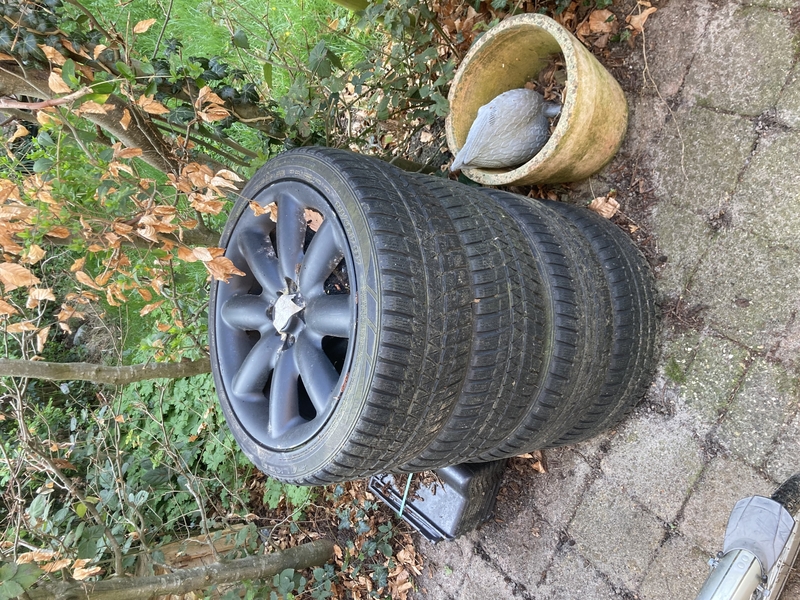 De velgen zijn aan een opknapbeurt toe. Door corrosie lopen de banden langzaam leeg, maar de banden zijn goed.