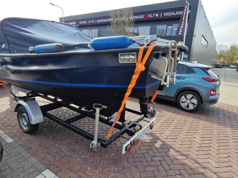 Boottrailer (stalling + transport) – direct beschikbaarDegelijke en goed onderhouden boottrailer, geschikt voor boten tot ca. 6 meter lang, 2,5 meter breed en max. 1.400 kg. ✔ Direct inzetbaar op de openbare weg Voorzien van lichtbalk met nummerplaathouder en 7-polige stekker (verloop naar 13-polig mogelijk). ✔ In nette staat Geen roest, solide constructie en dik in de coating. ✔ Praktisch en stabiel • 2 in hoogte verstelbare bootsteunen • 4 sjorogen voor veilig vastzetten • 2 achterste steunpoten • Neuswiel voor eenvoudig manoeuvreren en stabiele stalling • Perfect voor zowel transport als winterstalling • Reden verkoop: andere (grotere) boot aangeschaft